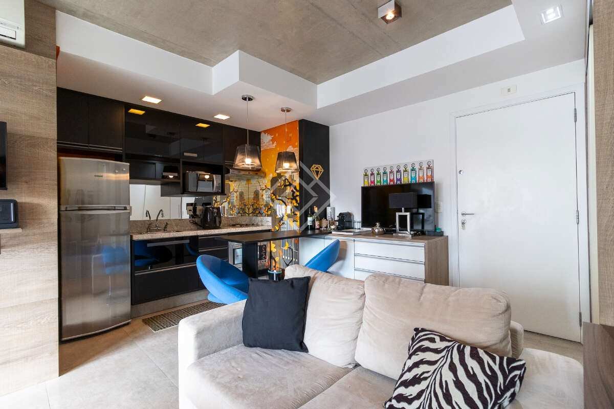 Apartamento mobiliado com 35 metros quadrados de área útil, ideal para quem busca um espaço moderno, funcional e pronto para morar na Vila Olímpia. Os ambientes são integrados, com sala, cozinha e quarto em um layout inteligente que valoriza cada metro do imóvel.